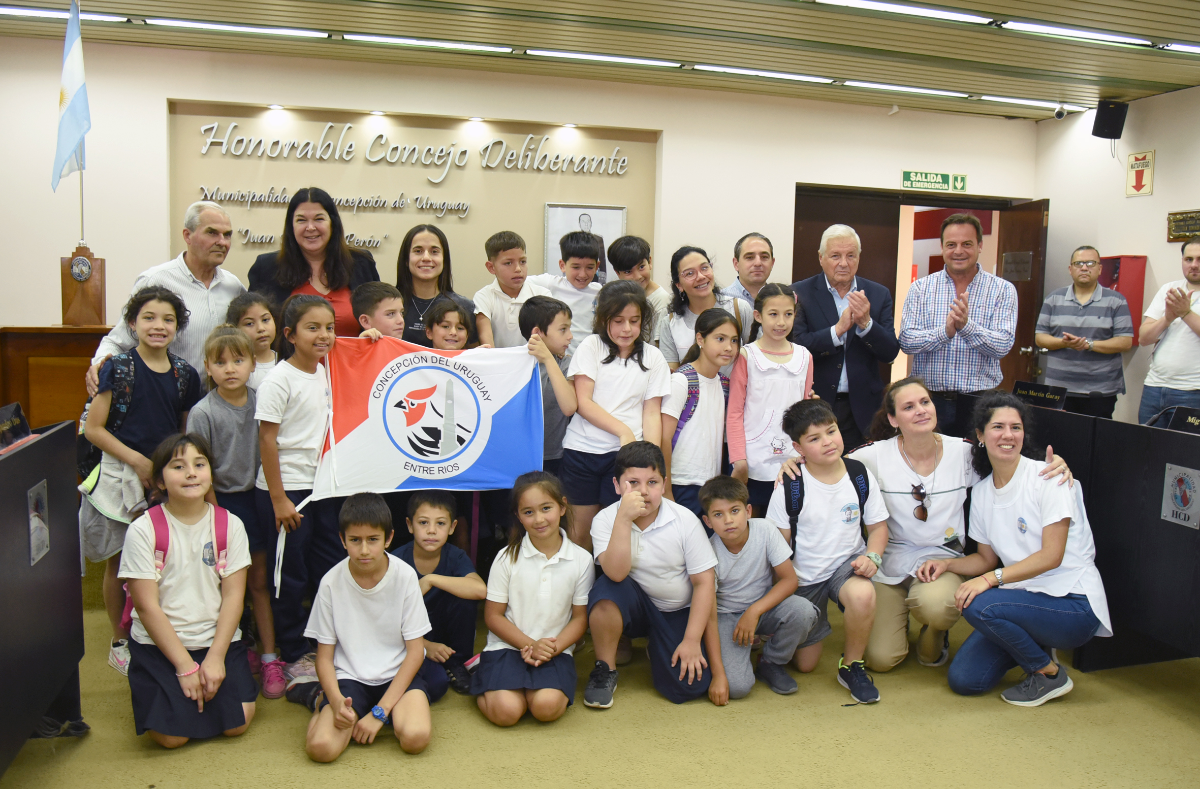 Por su parte, los chicos de la Escuela N°118, acompañados por las docentes Natalia Pérez, Alejandra Almada y Cynthia Cieri, le hicieron entrega de la bandera de Concepción del Uruguay.