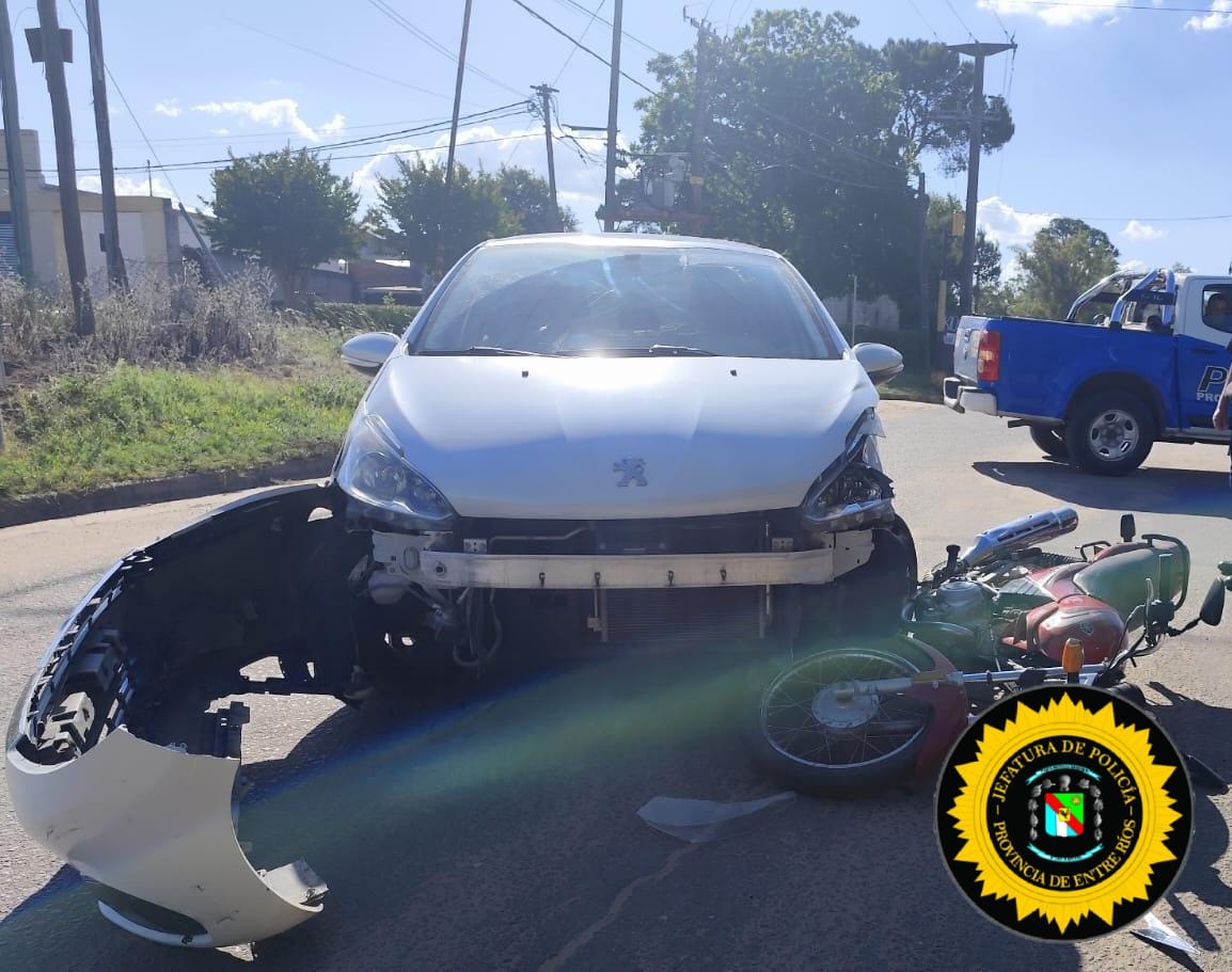 Un siniestro vial se registró esta tarde en el cruce de Alfonsina Storni y Misiones, donde un motociclista resultó con una fractura tras ser embestido por un automóvil.