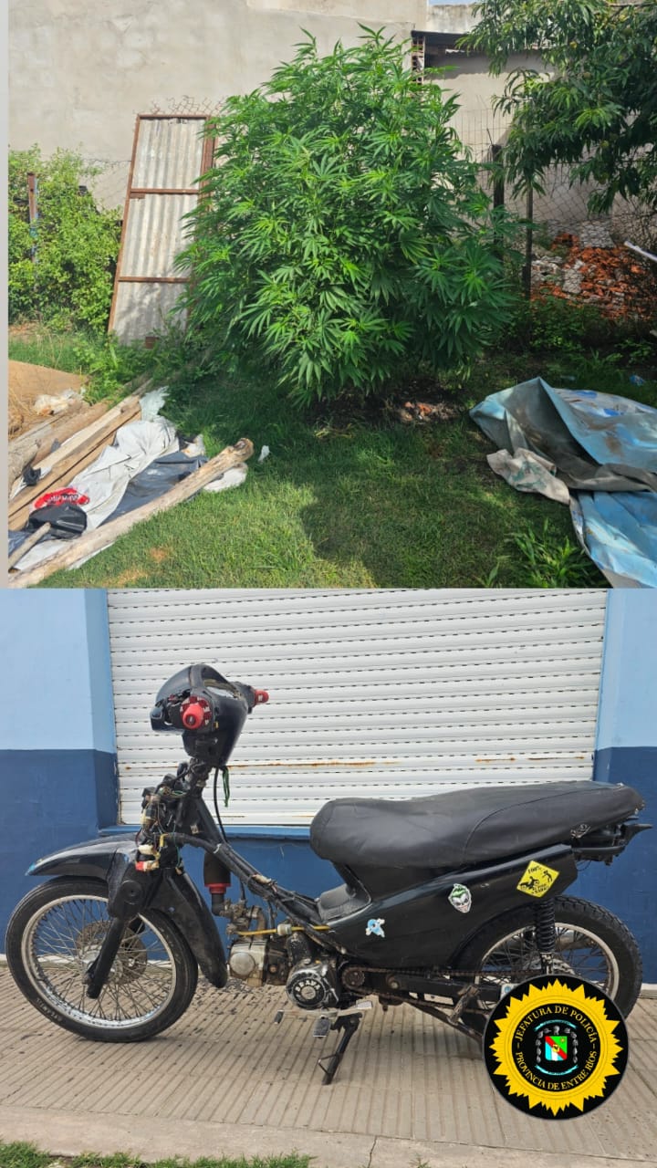 Personal de la Comisaría de Basavilbaso realizó ayer por la tarde un allanamiento en una vivienda de la ciudad, donde secuestró una motocicleta vinculada a una causa por amenazas y encontró dos plantas de marihuana, en un procedimiento ordenado por la Justicia e impulsado en el marco de una investigación por abuso de armas.