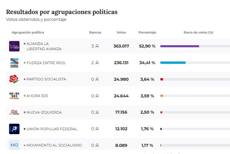 Amplio triunfo de La Libertad Avanza en Entre Ríos: superó el 52% en ambas categorías