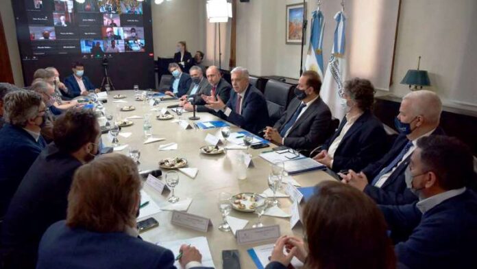 Del encuentro, que comenzó minutos después de las 18, participaron los presidentes de la Sociedad Rural (SRA), Nicolás Pino; de la Federación Agraria (FAA); Carlos Achetoni; de Confederaciones Rurales (CRA), Jorge Chemes, y de Coninagro, Carlos Iannizzotto.