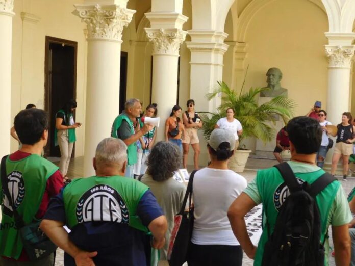 La medida da continuidad al plan de lucha por tiempo indeterminado iniciado el 26 de diciembre de 2025, en rechazo a las políticas de ajuste del gobierno provincial. La decisión se ratificó en una asamblea realizada el martes 30 de diciembre en el patio central de la Casa Gris, donde los trabajadores expresaron su «indignación y bronca».