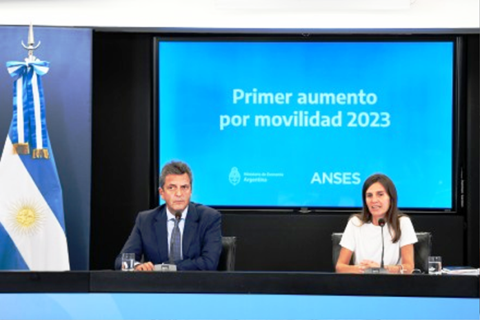 La directora ejecutiva de ANSES, Fernanda Raverta, y el ministro de Economía de la Nación, Sergio Massa, anunciaron este viernes un refuerzo para las jubilaciones y pensiones de hasta dos haberes mínimos. Con esta medida, ninguna jubilación quedará por debajo de los 73 mil pesos, más el aumento correspondiente a la Ley de Movilidad. Este incremento, el primero de los cuatro que se otorgarán en el año, será de 17,04 por ciento para todos los beneficiarios de la Seguridad Social (el 84 por ciento son jubilados y pensionados, es decir, 6.1 millones). Asimismo, la Asignación Universal por Hija e Hijo subirá a 11.465 pesos. Mientras que el refuerzo será de 15 mil pesos por mes que se abonará en marzo, abril y mayo para quienes perciban hasta una jubilación mínima. y que irá decreciendo progresivamente hasta los 5000 pesos para los que perciban hasta dos haberes mínimos. Así, con estos incrementos, la jubilación mínima ascenderá a 73.665 pesos. Manifestaron que, en 2019 cuando comenzó la gestión, la jubilación mínima era de 14 mil pesos mientras que ahora llegará a los 73.665 pesos. Con esta medida, la jubilación mínima aumenta un 11 por ciento en términos reales desde diciembre de 2019, recuperando así parte del 19,5 por ciento perdido durante el gobierno anterior. En este marco, Raverta expresó “Un jubilado de la mínima va a tener en marzo como haber una jubilación de 73.665 pesos. Es decir que ningún jubilado cobrará menos de 73 mil pesos”.