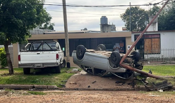 Un automóvil Volkswagen Bora terminó volcado sobre la vereda en una esquina de Concordia esta mañana tras colisionar contra un poste de luz y una camioneta estacionada; sus ocupantes fueron trasladados al hospital.