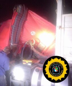 Según fuentes policiales; el choque involucró a un camión Volvo 370 rojo con acoplado, conducido por un hombre de 65 años, que impactó contra la parte trasera del acoplado de un camión Scania 113 blanco con acoplado, conducido por un hombre de 69 años.