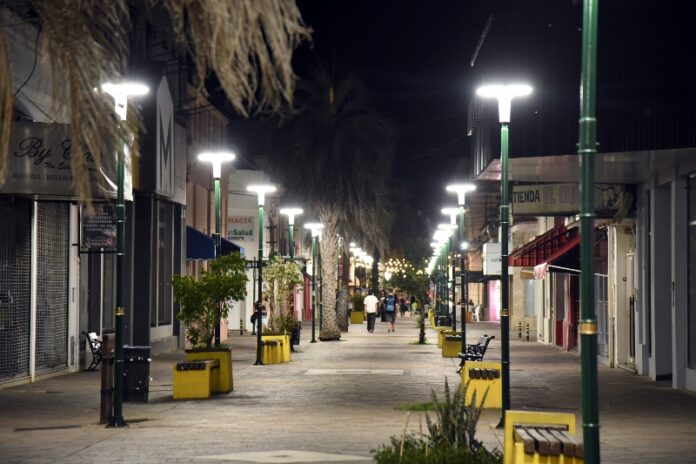 En este marco, se concretó la instalación de nuevas luminarias LED en las columnas de la peatonal “Luz y Color”, que se complementan con guirnaldas ornamentales colocadas recientemente en este paseo y en diversas calles del centro. La iniciativa surgió a partir de un encuentro entre el gobierno local y comerciantes, como parte de una estrategia de trabajo conjunto entre el sector público y el privado.