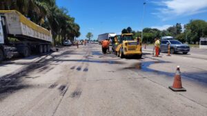 A su vez, se llevan adelante tareas de mantenimiento en las inmediaciones de los peajes de Elía, Colonia Elía y Piedritas, con trabajos de bacheo localizado y mejoras operativas. Estas acciones buscan optimizar el paso vehicular y reducir riesgos en zonas de alta circulación.