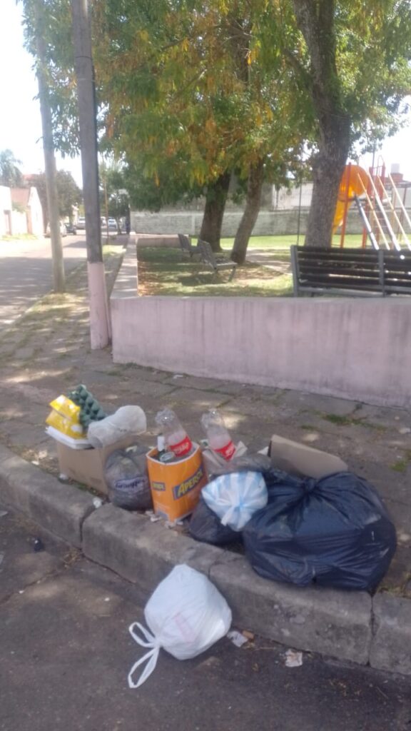 Los vecinos del sector mantienen una costumbre que quedó del pasado. El contenedor que existía en esa esquina fue retirado hace muchos años junto con otros en distintos sectores de la ciudad. Sin embargo, muchas personas continúan llevando sus bolsas hasta la placita como si el recipiente todavía estuviera allí.
