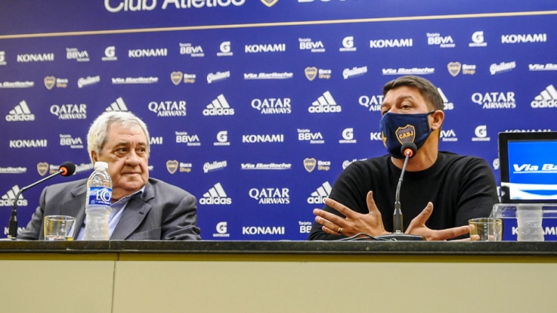 En el comienzo de la jornada en Ezeiza se vieron las últimas imágenes de Miguel Russo caminando al lado de Riquelme, Jorge Bermúdez, Raúl Cascini y Marcelo Delgado, los integrantes del Consejo de Fútbol boquense.