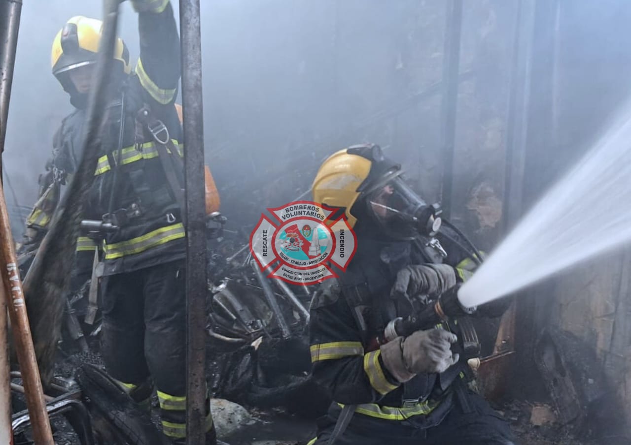 Un incendio que se originó en el garaje de una vivienda en el barrio Santa Teresita, propagándose a una construcción vecina, fue controlado tras más de una hora de trabajo por parte de Bomberos Voluntarios de Concepción del Uruguay, sin registrar víctimas personales.