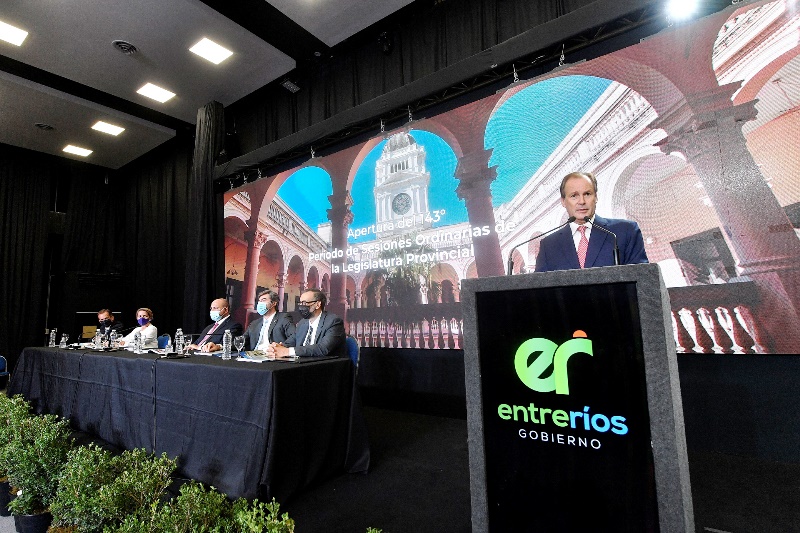 El gobernador Bordet destacó el ordenamiento de las cuentas públicas al inaugurar este martes el año legislativo. Ante el pleno de diputados y senadores hizo un balance de las obras en ejecución y las proyectadas para 2022. Adelantó que regulará el uso de agroquímicos.