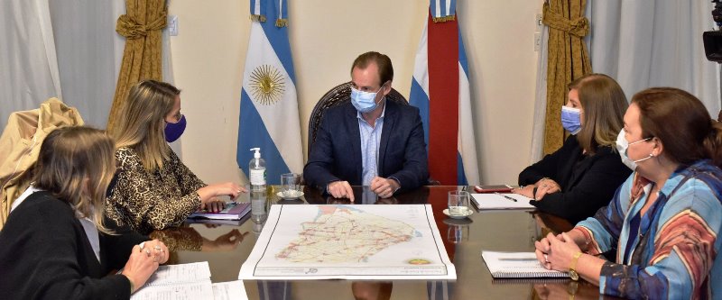 En un encuentro que se desarrolló en Casa de Gobierno estuvieron presentes la vicegobernadora Laura Stratta; las ministras de Desarrollo Social, Marisa Paira; y de Gobierno, Rosario Romero; y la titular de Vialidad provincial, Alicia Benítez.