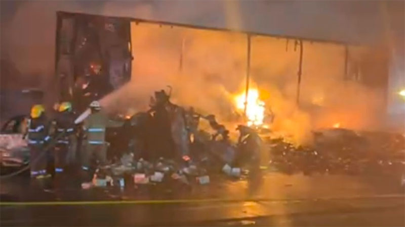 El hecho ocurrió anoche cerca de las 22.30 en el kilómetro 37,5 en sentido a Campana, donde por causas que eran investigadas se produjo el siniestro que involucró a cinco vehículos, uno de los cuales -que transportaba aerosoles- explotó y comenzó a incendiarse, en tanto que el fuego se extendió al resto de los autos, publicó Télam.