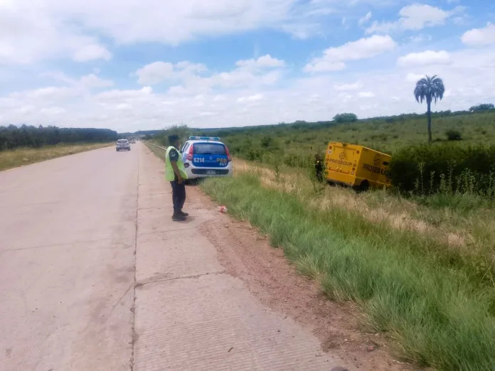 Un camión de caudales de la empresa Prosegur protagonizó un vuelco este mediodía en el kilómetro 182 de la autovía José Gervasio Artigas, cuando circulaba desde Concepción del Uruguay hacia Concordia con tres empleados a bordo, quienes resultaron ilesos a pesar de la gravedad del incidente.