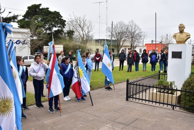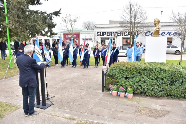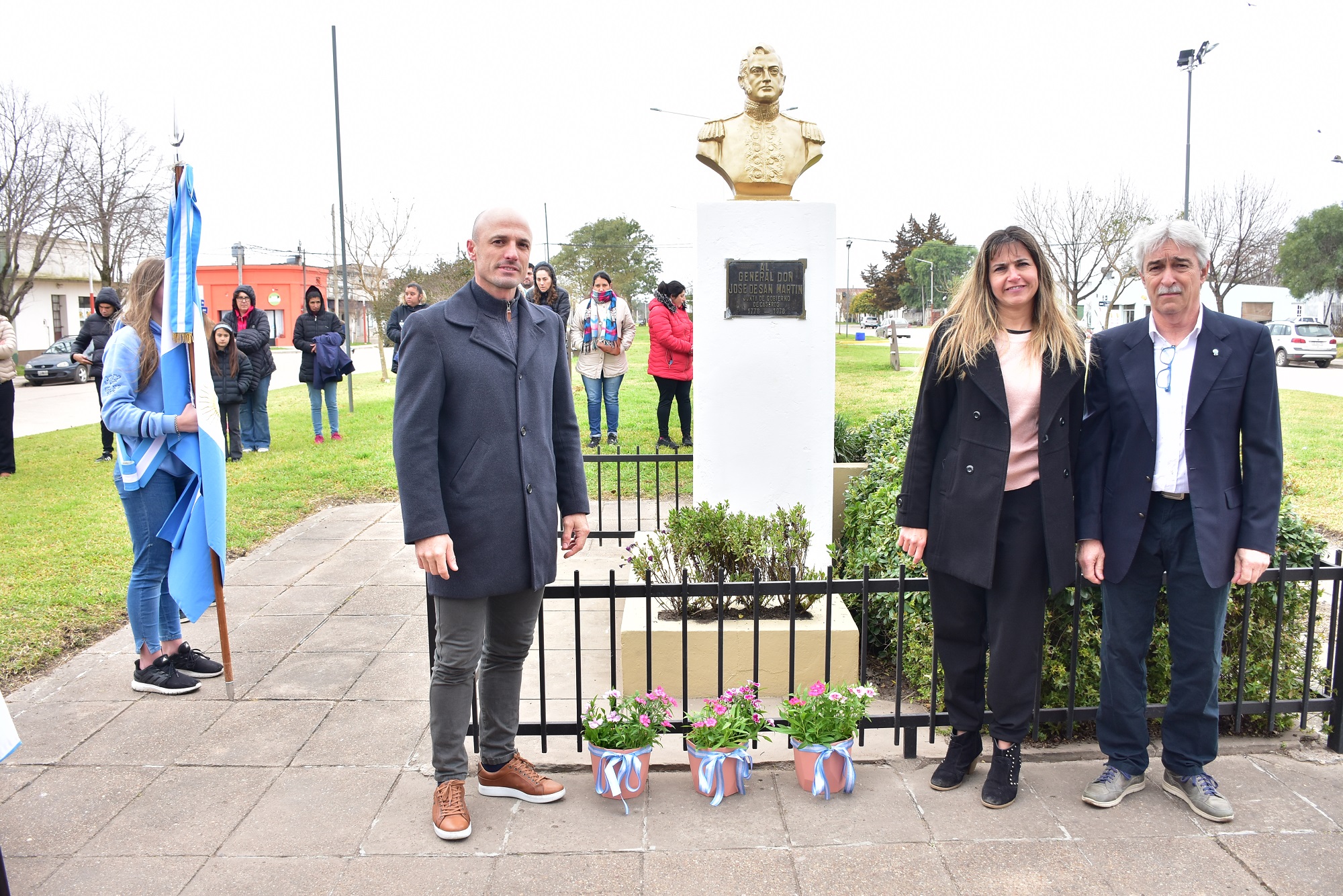 El acto protocolar contó con palabras alusivas a cargo del presidente municipal, Oscar Francou. Además, el Intendente junto a la viceintendenta, Yamina Henchoz, y al secretario municipal, Lucas Trovalesi, colocaron una ofrenda floral en homenaje al prócer. También, el autor Daniel Rochás estuvo presente con palabras alusivas a la fecha.