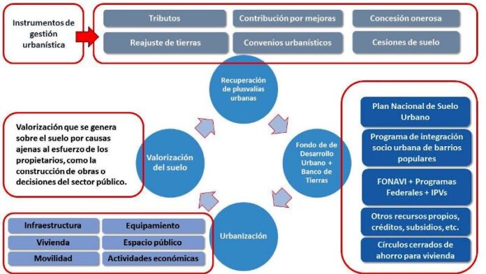 La clave de todo el proceso es la recuperación y reinversión por parte del Estado de la valorización del suelo generada por las acciones públicas, tanto en obras como en normativa. Existe una amplia gama de instrumentos para lograrlo: contribución por mejoras, concesión onerosa de edificabilidad adicional, reajuste de suelos, etc. Lo ideal sería que estos instrumentos de gestión urbanística formen parte de un sistema armónico, se articulen con la política tributaria, y estén incluidos expresamente en leyes nacionales y provinciales de ordenamiento territorial. De todos modos, aún sin ellas, los municipios son autónomos y pueden hacer mucho en este sentido. Esta estrategia permitiría construir un número significativo de viviendas sociales pero también contribuiría a aumentar la oferta para sectores medios, y reactivaría notablemente la construcción con todo lo que ello implica en términos de empleo y dinamización de la actividad comercial. Para construir viviendas se necesita poner en marcha los tres factores de la economía clásica: la tierra, el capital y el trabajo.