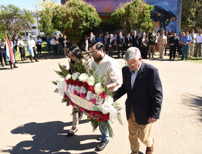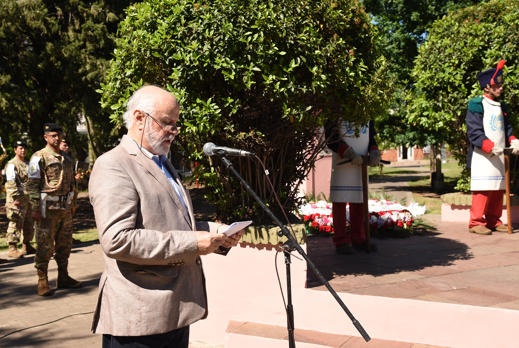 El acto fue encabezado por el intendente José Eduardo Lauritto, junto a funcionarios municipales, representantes de instituciones educativas y culturales, y vecinos que se acercaron a rendir tributo a una de las figuras más trascendentes de la historia entrerriana y nacional.