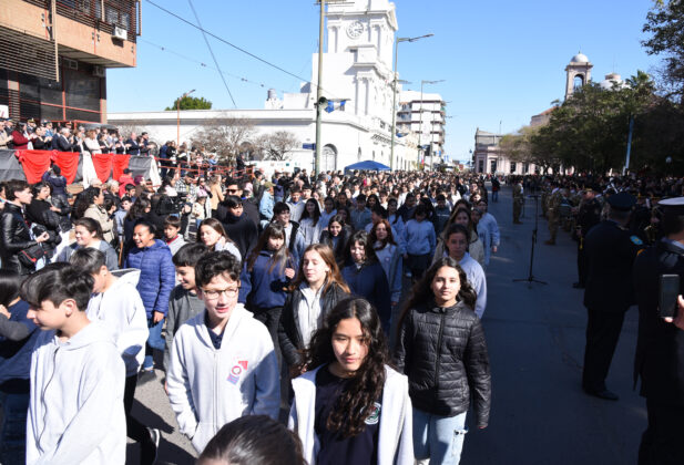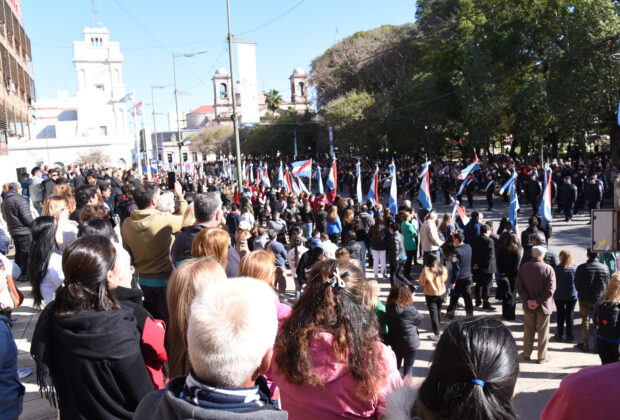 Fue durante el acto central y desfile cívico militar realizado en la plaza General Francisco Ramírez, vestida de fiesta. Estuvo presidido por la vicegobernadora, Alicia Aluani, junto al intendente, José Lauritto; la titular del Consejo General de Educación, Alicia Fregonese; la viceintendenta, Rossana Sosa Zitto; el rector del Colegio, Ramón Cieri, legisladores provinciales y demás autoridades.