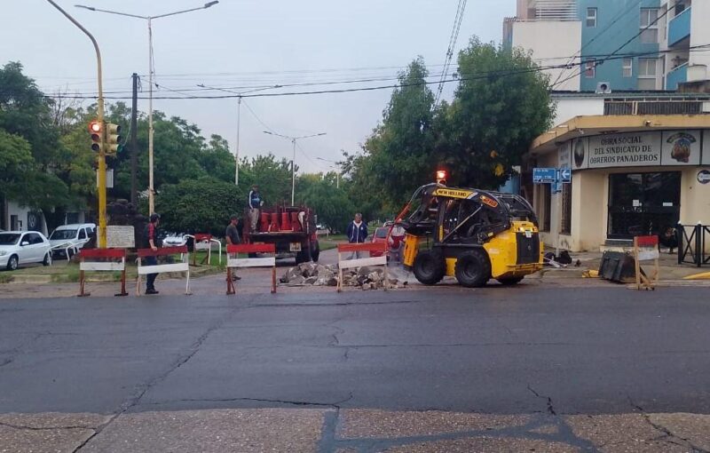 Las obras de reparación de calles de hormigón son ejecutadas por la firma IQU SA. En paralelo, el municipio realiza trabajos similares con equipos propios en avenidas de asfalto, como los accesos Juan José Bruno y José Luis Rodríguez Artusi, y en arterias del barrio Santa Teresita.