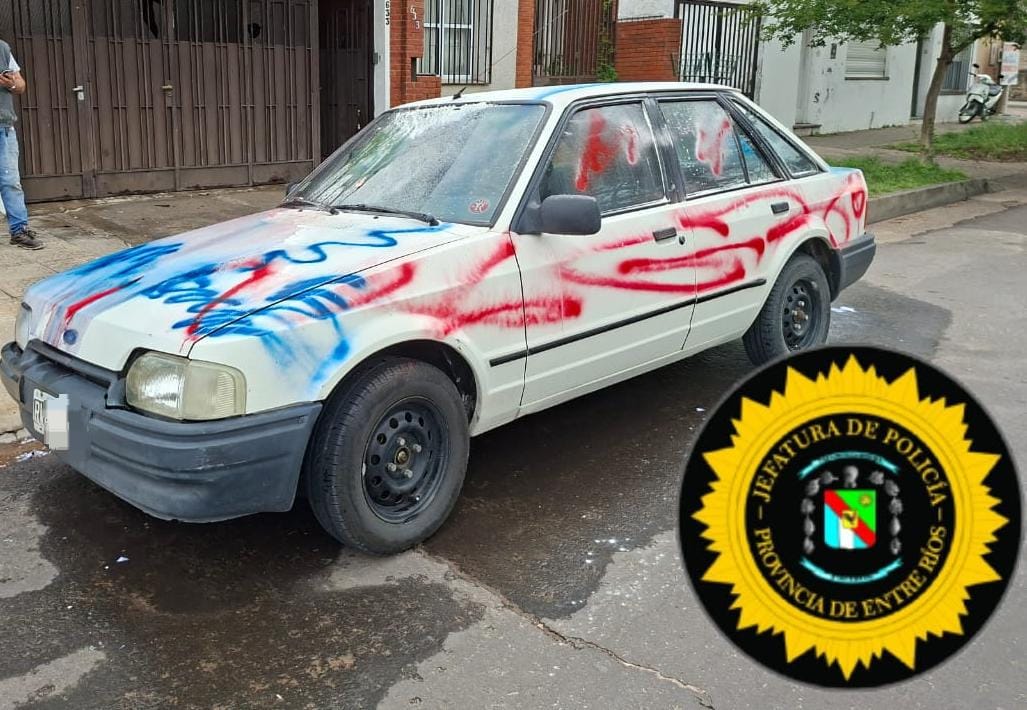 El vecino relató que un grupo compuesto por aproximadamente ocho o nueve menores de edad arrojó piedras contra su vivienda, lo que provocó la rotura de dos vidrios. Además, los vándalos utilizaron aerosoles para pintar su vehículo Ford Escort.