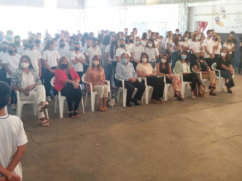 La acompañaron la directora de Primaria del Consejo General de Educación (CGE), profesora Mabel Creolani; el intendente de la localidad, Ramón Cornejo; el vice intendente, Roberto Notari; la secretaria de Gobierno, María Julieta Scévola; el equipo de supervisores, además de la directora de la primaria y la rectora de la secundaria, docentes y comunidad educativa toda.
