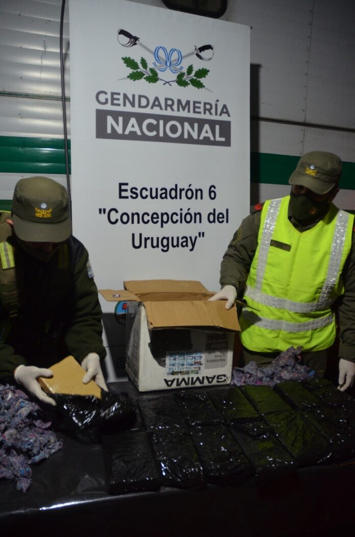El pasado primero de agosto efectivos del Escuadrón 6 “Concepción del Uruguay” de Gendarmería Nacional, en un Control de Ruta sobre la Autovía “José Gervasio Artigas”, con el apoyo del can Barby, detectaron una encomienda que fue despachada desde la ciudad de Posadas (Misiones) hacia la provincia de Buenos Aires, en donde se acondicionaban quince paquetes rectangulares de marihuana, que arrojaron un peso de catorce mil gramos aproximadamente.
