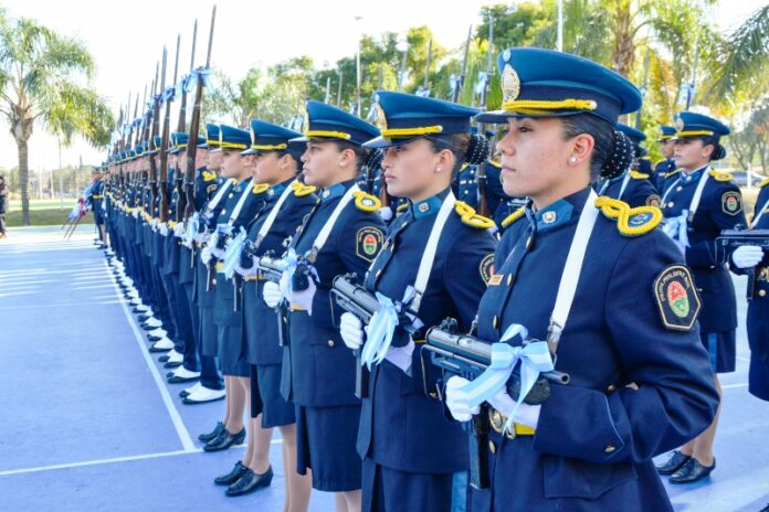 Los cadetes de tercer año de la escuela de oficiales Salvador Maciá, hicieron su juramento a la bandera este 20 de junio. La ceremonia estuvo presidida por la ministra de Gobierno y Justicia Rosario Romero y el jefe de Policía, Gustavo Maslein.