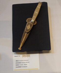 El Segundo Premio Adquisición del Gobierno de Entre Ríos fue para la pieza denominada «Cuchillo Artesanal», realizada en metal y cuero crudo del artesano de Gualeguay, Gustavo Muñoz, por su calidad técnica, prolijidad y terminación.