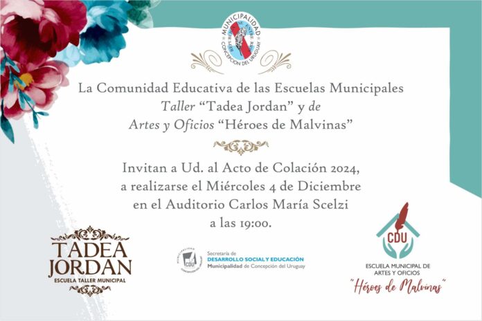 Dos establecimientos municipales tendrán su colación 3 de diciembre de 2024 FacebookTwitterPinterestWhatsApp Las comunidades educativas de las Escuelas Municipales Taller Tadea Jordán y de Artes Oficios Héroes de Malvinas tendrán este miércoles 4, a las 19:00, su colación en el salón auditorio Carlos María Scelzi.