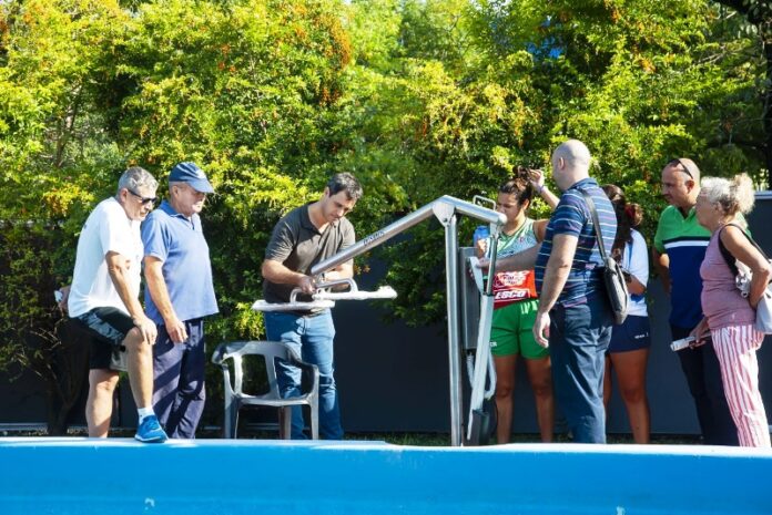Matilde Maggi, arquitecta, explicó lo siguiente: “En las instalaciones de nuestro club fue colocado un elevador portátil para piscinas, cuyo objetivo es introducir en la pileta a personas con movilidad reducida a partir de la transferencia: por ejemplo, desde silla de ruedas (si fuera usuario de la misma) y viceversa con mucha facilidad; permitiendo actividades dentro de la pileta, que podrían ingresar a la misma por sus propios medios o con asistencia”.
