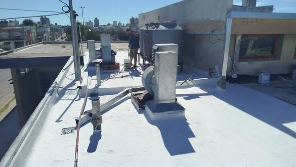 Impermeabilización de un sector de la losa sobre la cocina (techo de un emprendimiento gastronómico) para prevenir filtraciones.