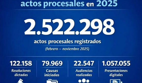 Entre febrero y noviembre de 2025, el Poder Judicial de la provincia registró un total de 2.522.298 actos procesales, con un promedio diario de 19.163 movimientos en días con actividad, según datos oficiales.