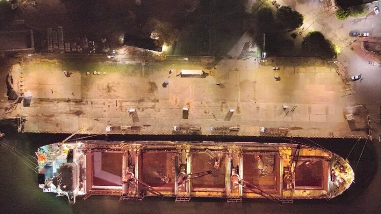 El buque ultramarino African Shrike amarró este miércoles al mediodía en los muelles 3 y 4 del puerto de Concepción del Uruguay para realizar una nueva operación de exportación con destino a la India. Esta maniobra marca un cambio significativo en la operatoria portuaria, que anteriormente se desarrollaba en los muelles 14, 15 y 16.