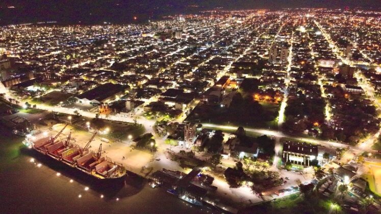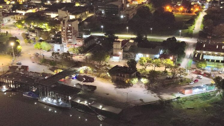 Las obras de renovación lumínica se ejecutaron gracias a un convenio con la empresa Enersa, que proporcionó asesoramiento técnico, lámparas LED de alta potencia y todo el sistema de protecciones y cableado necesario. La Municipalidad de Concepción del Uruguay también colaboró con personal y equipos elevadores para la instalación de las luminarias en altura y la renovación del alumbrado público en los accesos a la zona de embarque.
