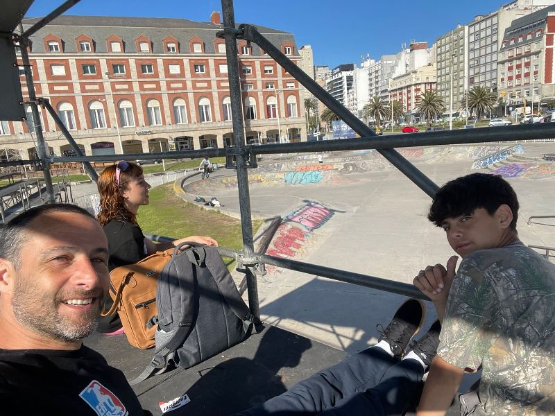Durante la estadía, recorrieron lugares icónicos del skate argentino. “Conocimos lugares míticos como Alicante, Plaza Mitre, y fuimos a la casa de “Tatu” Martínez, el padre de Milton Martínez, que hace poco fue elegido Skater del Año por la revista Thrasher. Tatu nos recibió, nos regaló rulemanes y nos dejó patinar en su rampa. Los chicos estaban fascinados”, relata.
