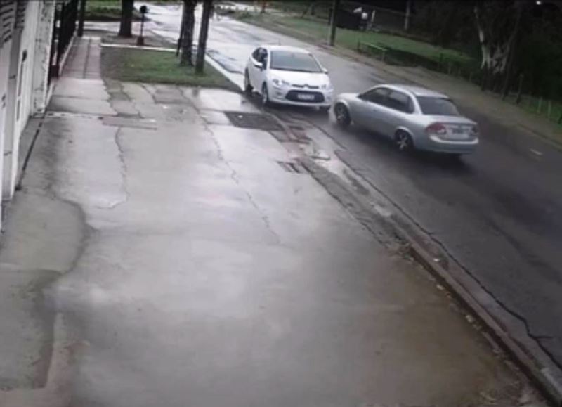En el material fílmico, se puede apreciar que alrededor de las 13 horas de este viernes, en la zona donde funciona la Sección Motorizada de la policía de Entre Ríos, un Chevrolet Corsa impactó de frente a un Citroën c3 que estaba estacionado sobre calle Urquiza.