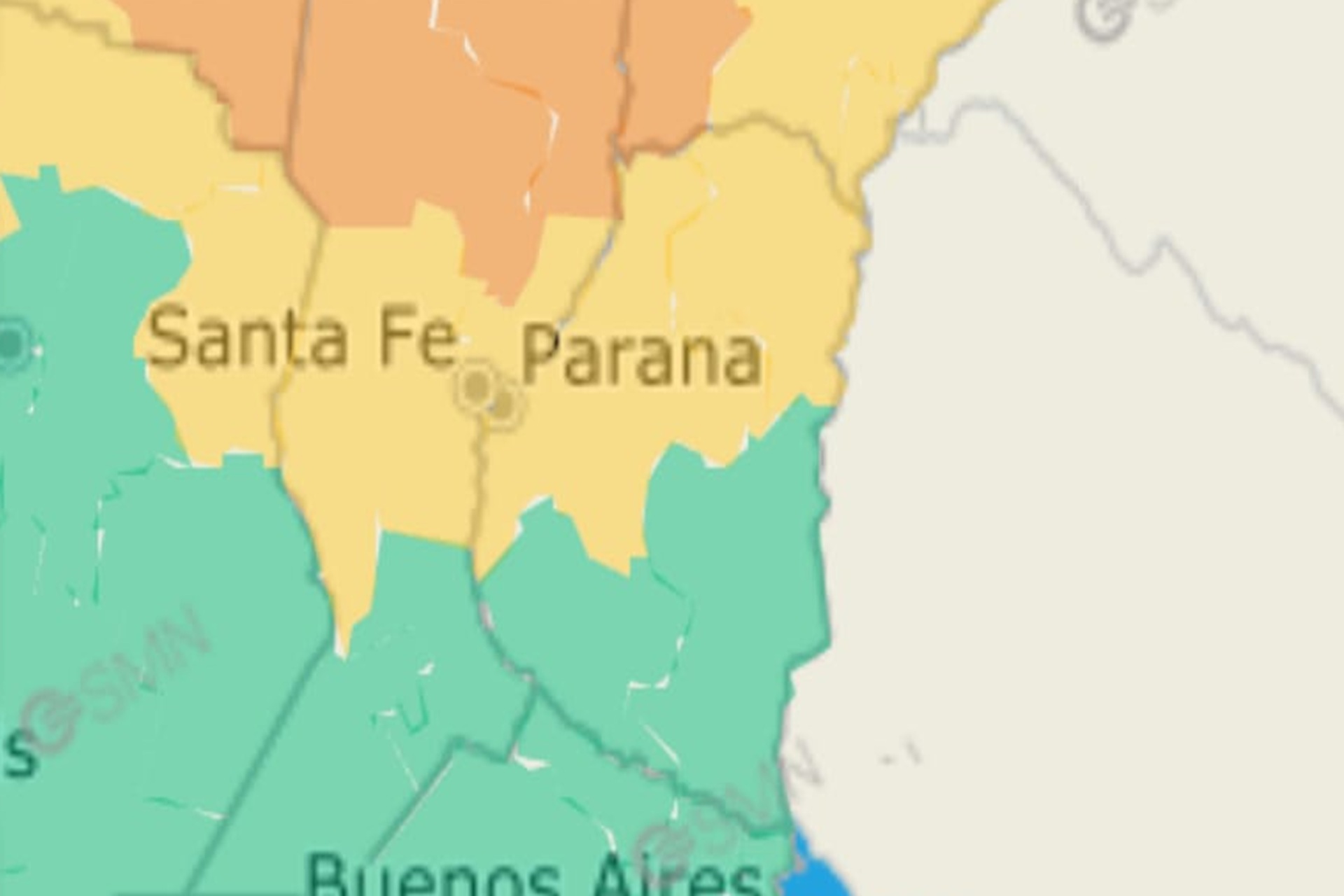 Mientras que para el lunes por la mañana rige alerta amarilla para la zona norte de la provincia. Los departamentos, Diamante, Nogoyá, Villaguay, Paraná, La Paz, Federal, Feliciano, Federación, San Salvador y Concordia serán afectados por tormentas de variada intensidad, algunas localmente fuertes. Las mismas estarán acompañadas por frecuente actividad eléctrica, granizo ocasional, ráfagas de hasta 70 kilómetros por hora y abundante caída de agua en cortos períodos. Se prevén valores de precipitación acumulada entre 30 y 70 milímetros, que pueden ser superados en forma puntual.