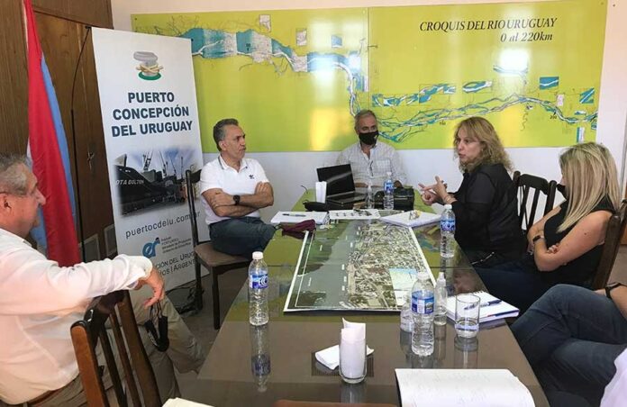 El presidente del Instituto Portuario Provincial de Entre Ríos, Carlos Schepens, junto al Fiscal de Estado de la Provincia, Dr. Julio Rodríguez Signes, y el presidente del Ente portuario uruguayense, Marcelo Gay Balmáz, han recibido a las diferentes empresas con el objeto de cerrar acuerdos que permitan canalizar los graneles a través del Elevador Terminal, y exportar cargas desde este puerto.