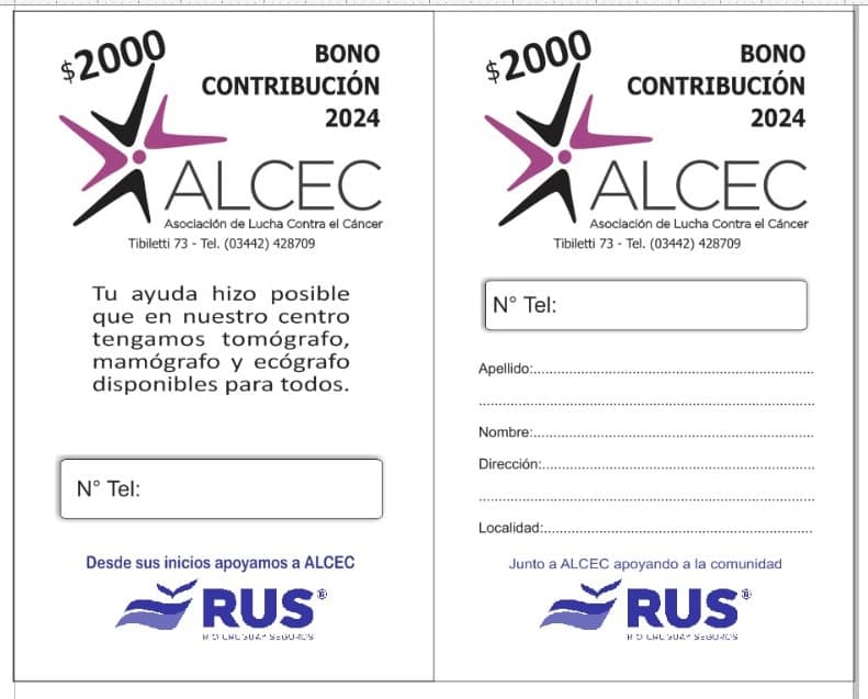La Asociación de Lucha Contra el Cáncer (Alcec) pondrá este miércoles 19 en marcha la venta de su bono contribución, a un valor de 2.000 pesos, de cara al sorteo final del 21 de noviembre de 2024.