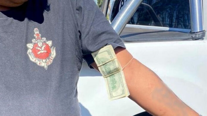 Escondía dólares sujetándolos a su cuerpo y se los incautaron