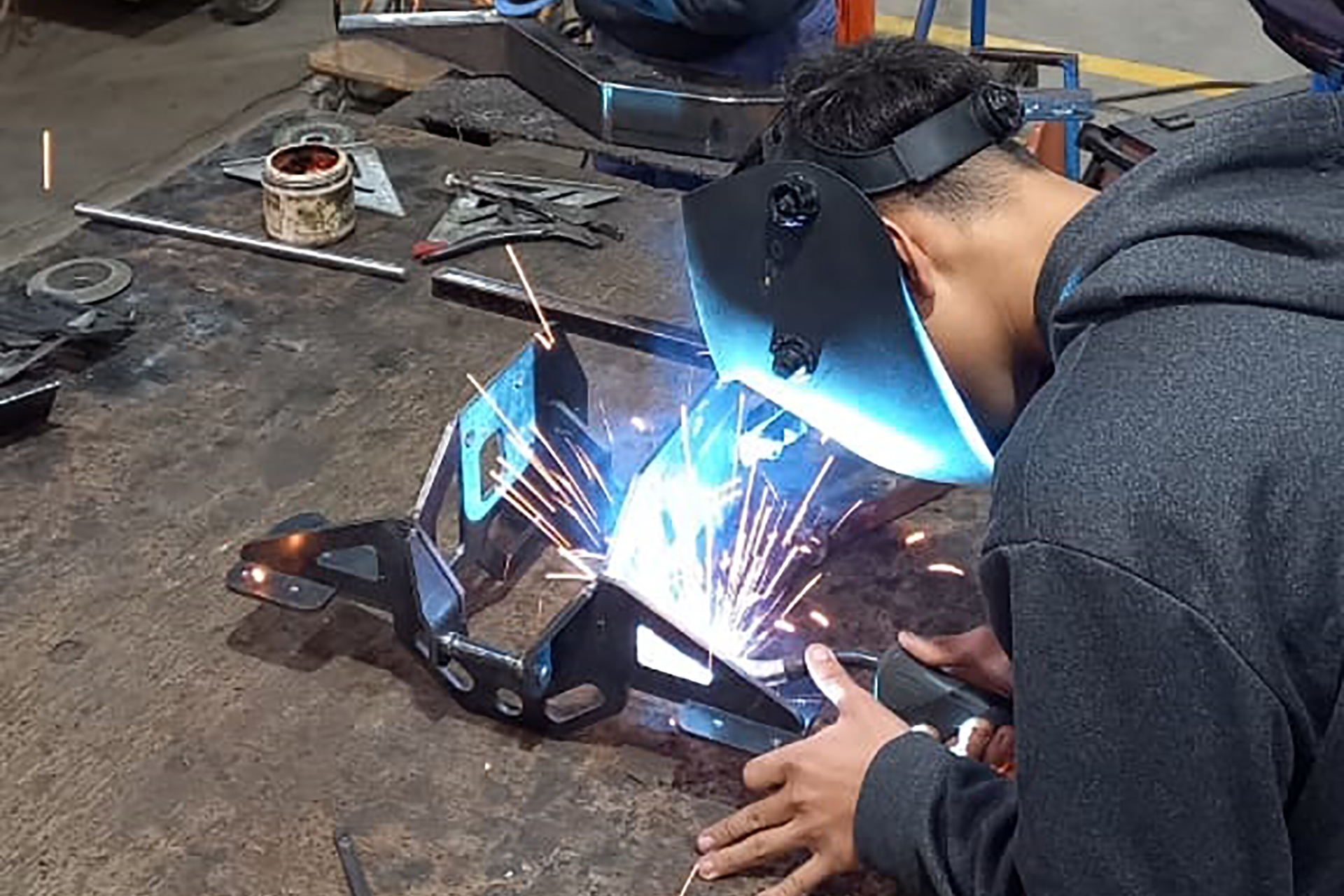 Luego, por medio del profesor de Oficina Técnica, Franco Mattiauda, se imprimió el plano y una vez impreso, en la asignatura Herrería, a cargo del profesor José Luis Buriano, los estudiantes de 5° año del ciclo superior se encuentran fabricando la grúa en lo que respecta a trabajos de soldadura y armado. También la sección Mecánica se dedicará a las piezas torneadas.