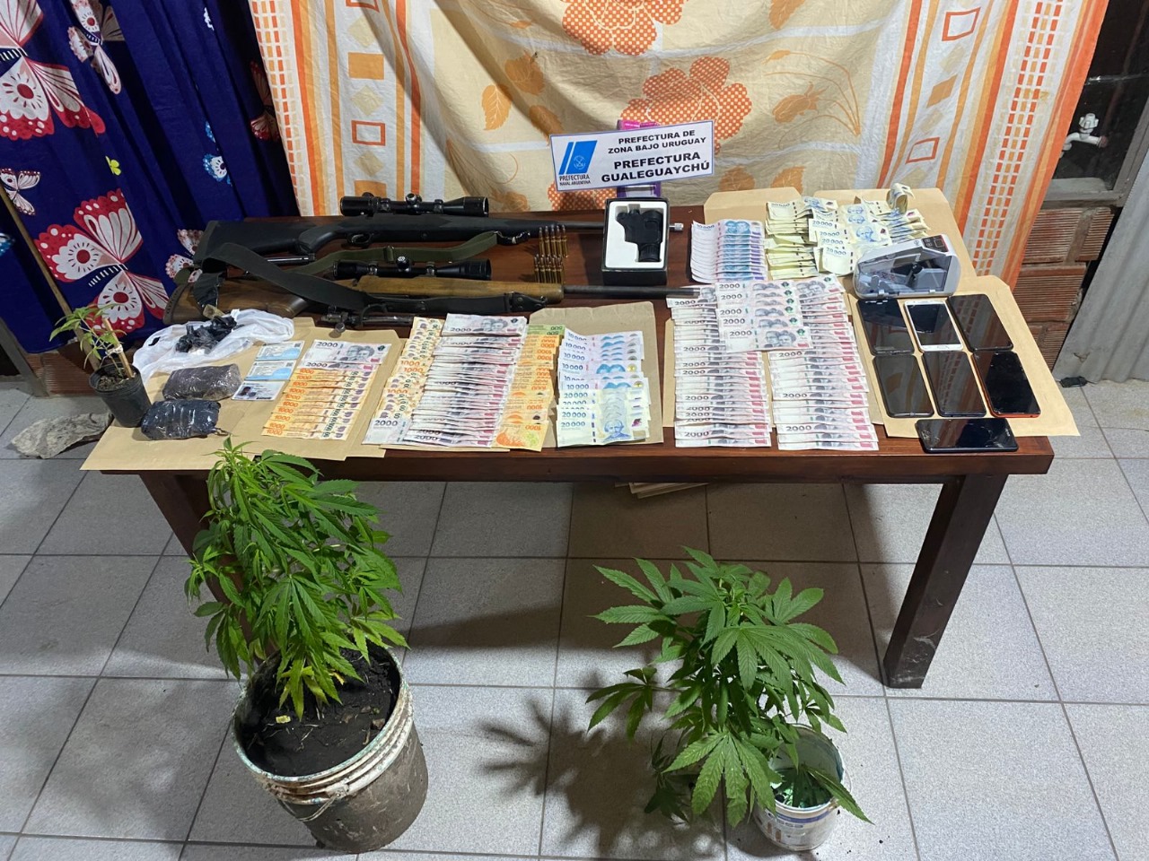Un fuerte operativo conjunto entre la Policía de Entre Ríos y la Prefectura Naval Argentina desarticuló una organización dedicada al narcotráfico en Concepción del Uruguay. Los allanamientos se realizaron durante la noche del miércoles y se extendieron hasta la mañana del jueves, dejando como saldo siete detenidos y un importante secuestro de drogas, armas y dinero en efectivo.