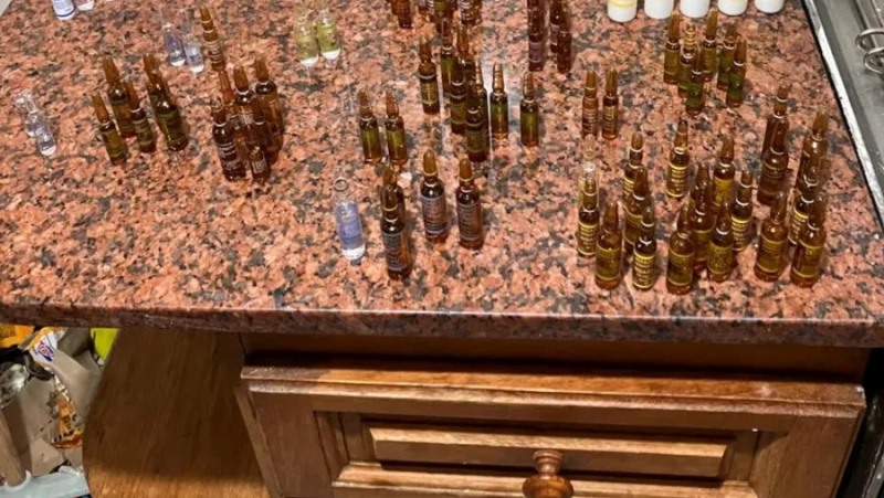 Sin embargo, el dato que más llamó la atención fue el hallazgo de una bolsa con al menos 112 ampollas de distintas drogas sin utilizar, entre ellas propofol, lidocaína, diclofenac, diazepam y otras sustancias de uso médico.