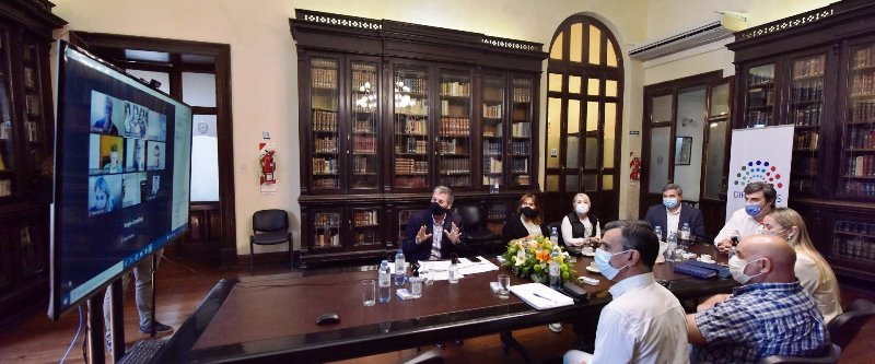 El titular de Economía de la provincia, Hugo Ballay, presentó este miércoles los lineamientos generales del Presupuesto provincial 2022, ante el presidente de la Cámara de Diputados, Ángel Giano, y los presidentes de los bloques de los diferentes partidos políticos.