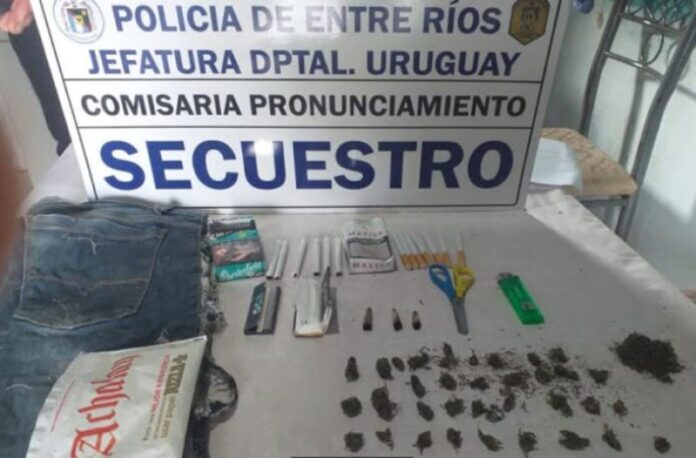 Una vez que los uniformados llegaron al lugar, se entrevistaron con una persona, quien manifestó que en el lateral de su vivienda, lindante con su vecino, mas precisamente en un hueco en la pared, habría elementos ocultos, precisaron desde la Jefatura Departamental Uruguay a este medio.