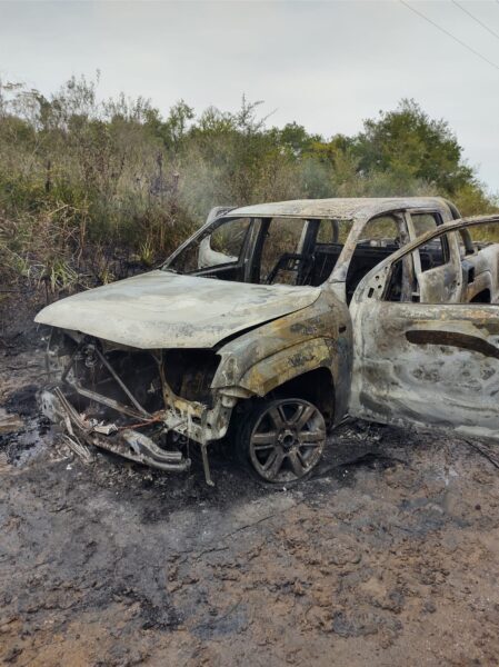 Sale de inmediato móvil 24 con personal y al arribo se observa que era una camioneta marca Volkswagen Amarok ya consumida por las llamas.
