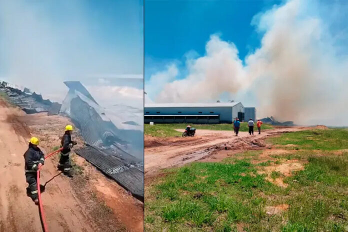 El siniestro se registró aproximadamente a las 12:20 horas, cuando personal policial en servicio observó una densa cortina de humo elevándose en la zona y se dirigió inmediatamente hacia el lugar para verificar la situación. Al arribar al establecimiento avícola, los efectivos constataron que la estructura del galpón número tres se encontraba completamente consumida por las llamas, con el fuego avanzando rápidamente por la totalidad de la construcción.