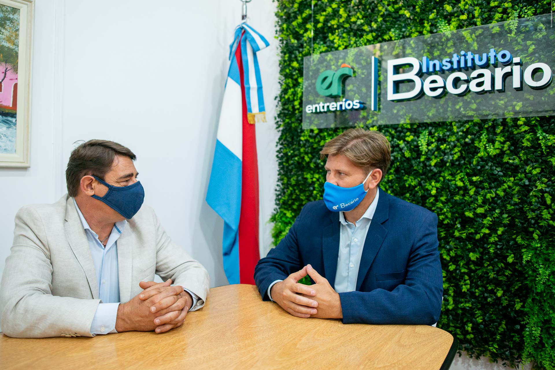 En este marco el titular del Becario, este martes y en vísperas a la apertura del registro, en su oficina en la Casa de Gobierno recibió al secretario de Transporte, Néstor Landra. Durante el encuentro se comprometieron a seguir trabajando en conjunto en pos de intercambiar información para continuar acompañando a más estudiantes entrerrianos.