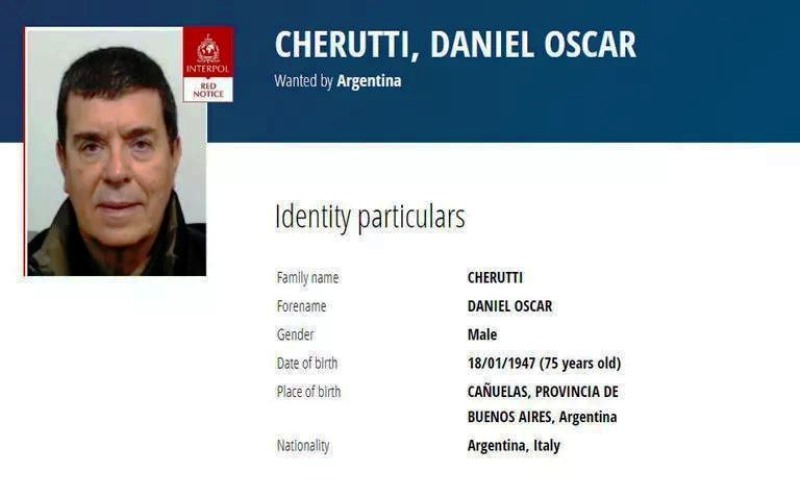 Interpol pidió la captura internacional de Daniel Cherutti, hermano mayor del humorista Miguel Ángel Cherutti, acusado por haber cometido delitos de lesa humanidad durante la última dictadura militar.
