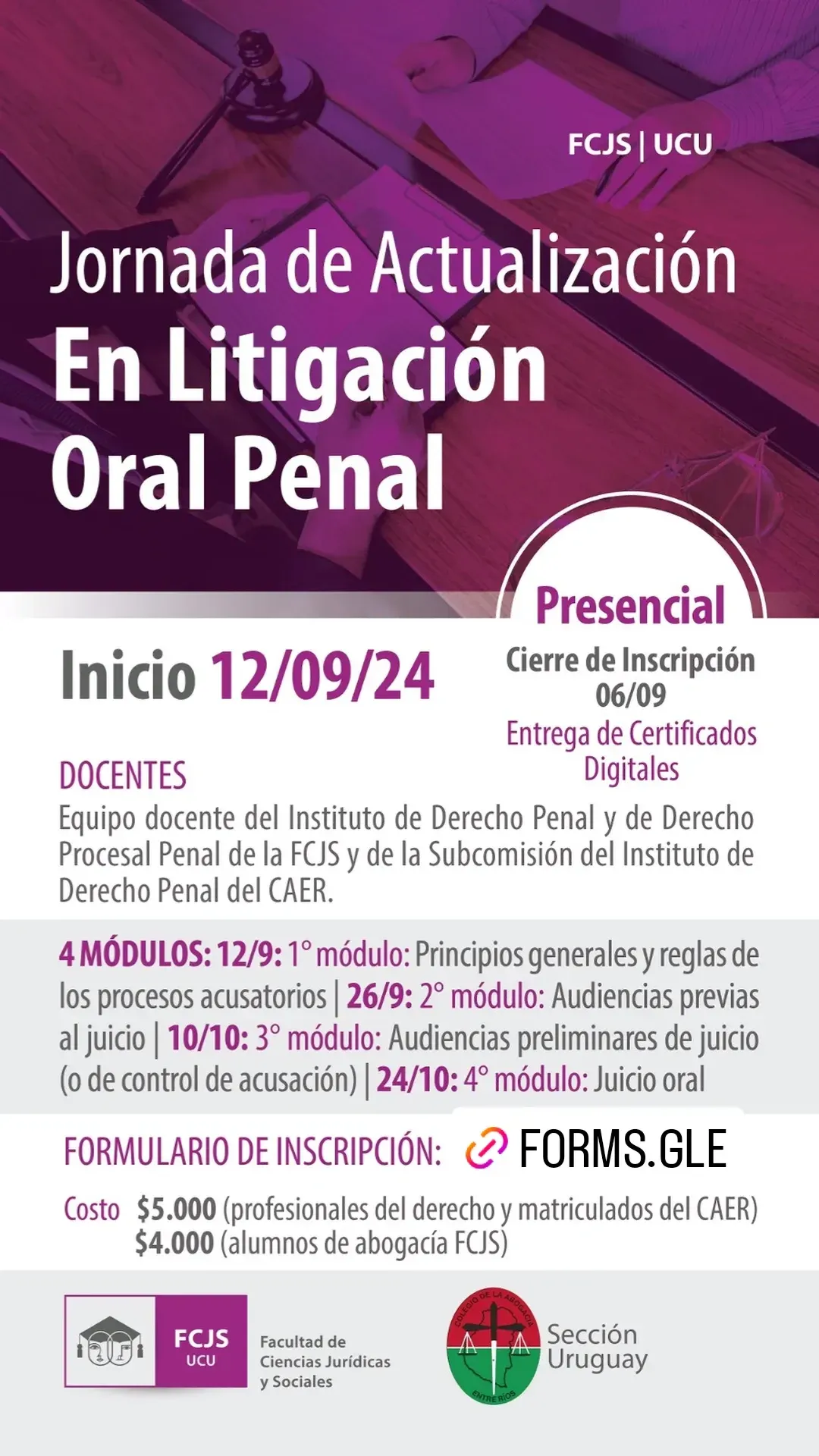 Docentes: Equipo docente del Instituto de Derecho Penal y de Derecho Procesal Penal de la Facultad de Ciencias Jurídicas y Sociales y de la Subcomisión del Instituto de Derecho Penal del Colegio de la Abogacía de Entre Ríos (CAER).